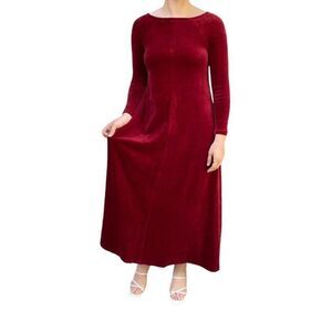 Vintage 1970s Womens Neiman Marcus Red Velvet Long Sleeve Gothic Maxi Dress Sz M