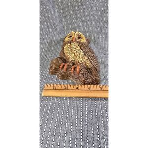 Crafted with a lightweight resin-foam blend, this wall-hanging features rich earth tones and textured detailing that capture the whimsical spirit of mid-century decor.Crafted with a lightweight resin-foam blend, this wall-hanging features rich earth tones and textured detailing that capture the whimsical spirit of mid-century decor. The owl’s wide eyes and perched stance evoke a cozy woodland vibe, perfect for boho, cabin, or eclectic interiors. Original hanger intact and ready to display.