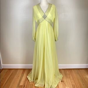 Vintage 1970s Bishop Sleeve High Waist Gown