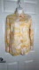 Textile in hues of yellow orange and subtle shades of greens set upon a white background.