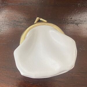 Charming white coin purse featuring Raggedy Ann and Andy. Perfect for storing small items.