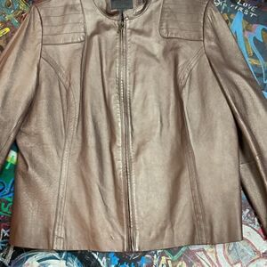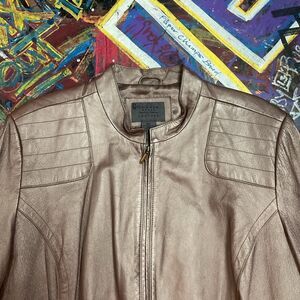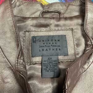 Vintage 1980s Bronze Leather Jacket by Uniform Woman - Size 2X - Zippered Cuffs