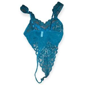 Vintage 1980s 90s Victoria's Secret Green Lace Teddy. Gorgeous high cut design. Size xs. Euc