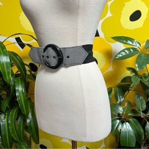 Vintage 1980s Houndstooth Tweed and Black Fabric Oversized Statement Belt