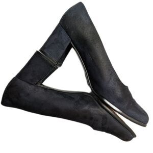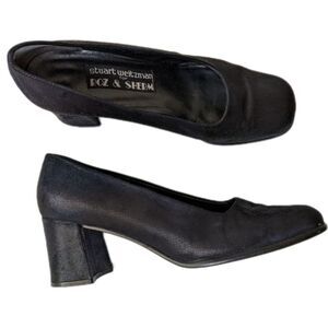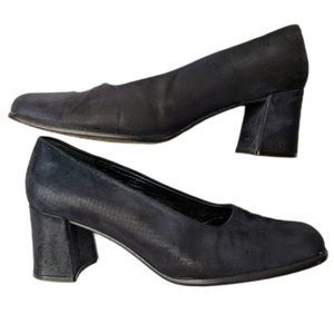 Vintage 1980s black block heel Stuart weitzman square toe heels textured 6.5