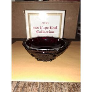Vintage 1982 Avon 1876 Cape Cod Ruby Red Cranberry Glass Dessert Bowl NOS w Box