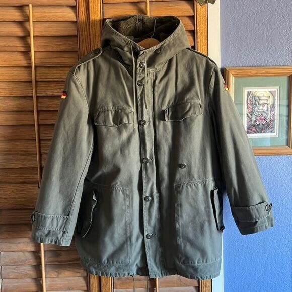 #vintage #80's #canvas #military #army #german #parka #furlined #heavy #coldweather #fieldcoat #distressed #unique #edgy #gorpcore #rocker #grunge #goth #rugged #rock #winter #utility #camping #heavycanvas #armygreen