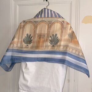 Vintage 1987 Ginnie Johansen Large Thin Cotton Architectural Print Scarf
