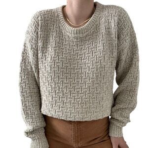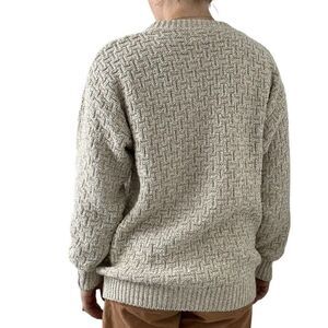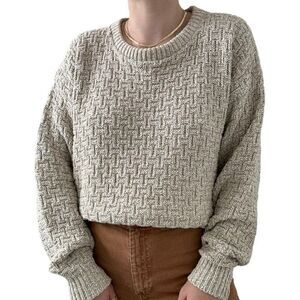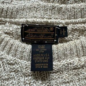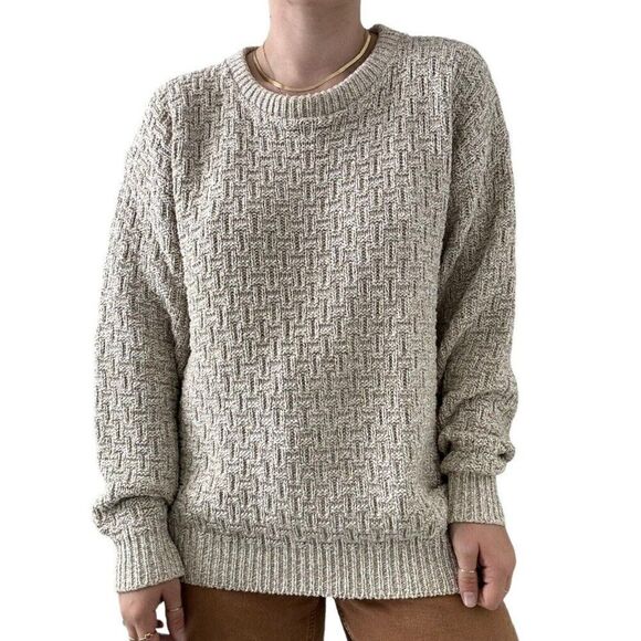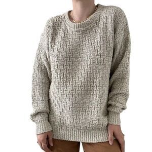Vintage 1990s Eddie Bauer Beige Tan Crewneck Chunky Cotton Sweater Made in USA