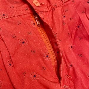 Features 2 functional flower shaped buttons at front, zipper fly and belt loops