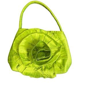 Vintage 1990's Rachel & Co Handbag Green Flower Small Cloth Purse Magnet Clasp