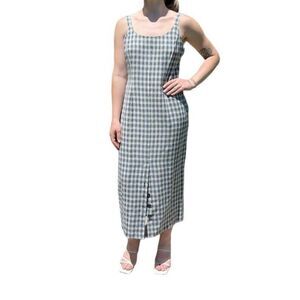 Vintage 1990s Womens Black White Plaid Checkered A Line Modern Maxi Dress Sz L
