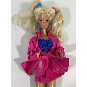 Vintage 1990s Barbie Mattel Superstar Hot Pink Outfit Big Earrings.