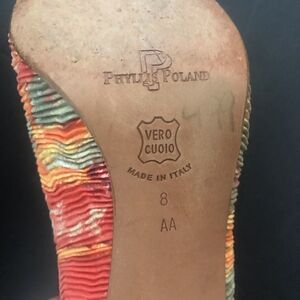 Excellent vintage condition and quality from Phyllis Poland. Made in Italy. Marked size is 8 AA. Narrow. 3.5 inch heels.