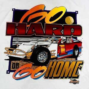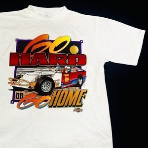 Vintage 1993 Single Stitch “Go Hard Or Go Home” Drag Racing Tee. Arizona Tag. 100% Cotton. Awesome Racing Tee! Super Vibrant Colors. Deadstock Perfect 10/10 Condition. Crispy White. Size Large.