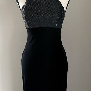 Vintage (1994) Black Halter Sequin and Velvet Evening Gown. Fits Like a Size 4/6