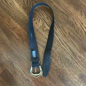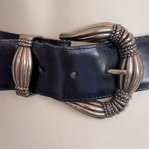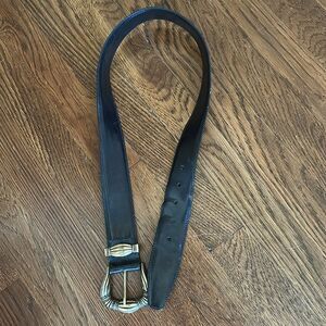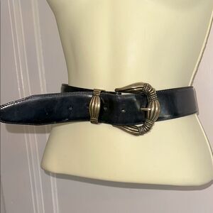 Vintage 1994 Brighton Wide Black Leather Belt with Ornate Gold Buckle