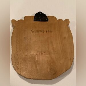 Vintage 1998 hand carved wooden wall plaque. This is carved to resemble an animal face although not sure which animal exactly. Definitely gives ‘beast’ or ‘scary’ / ‘creepy’ vibes. Wood is perhaps pine. 1” thick and about 10” x 10”. Nice condition. Thanks for looking :)