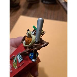 Add some Looney Tunes charm to your holiday decor with this vintage 1998 Warner Brothers Sports Tas Christmas ornament Featuring the Tasmanian Devil in full sporty chaos he's holding a baseball in one hand and a chewed-up baseball bat in the other, while clenching a basketball in his mouth He’s wearing a green and yellow baseball cap and comes with an attached gold hanging loop for easy display Behind him sits a blue and yellow car, and he’s perched on a bright red locker marked 1225 with football-themed stickers and the phrase Merry Christmas Measures approximately 5 inches long by 1.25 inches tall A fun collectible for any Tas fan or nostalgic 90s holiday lover