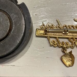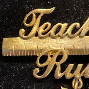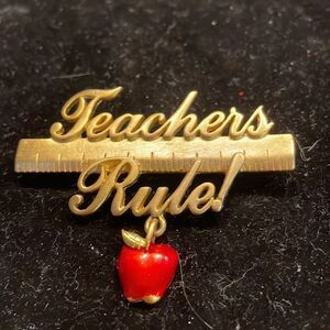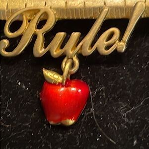 Vintage 2.3” Joanette Jewelry Teachers Rule gold tone brooch ruler enamel apple