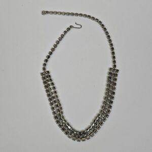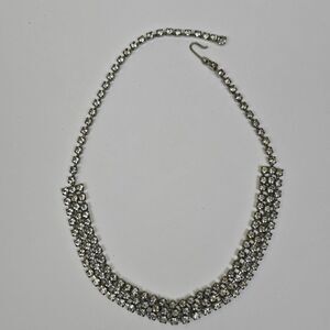 Vintage 3 Row Clear Crystal Rhinestone Collar Choker Necklace Retro 60s 15" Long