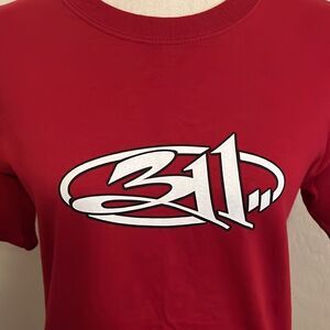 Vintage 311 Band Red Evolver Graphic Shirt, size small, please note: has signs of wear, pinholes and a stain in front.
