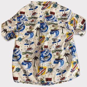 Awesome button up featuring monster’s surfing and living it up on vacation. All over graphics, great vintage condition, no major flaws to note outside of normal wear. Button up with collar.