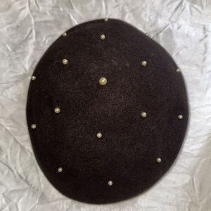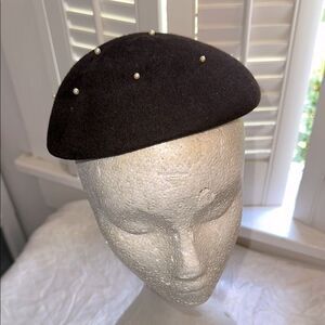 Vintage 40s/50s Glenover Brand Black Felt Beret with Pearl Accents on Top