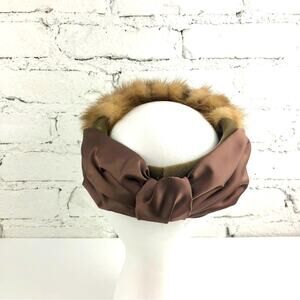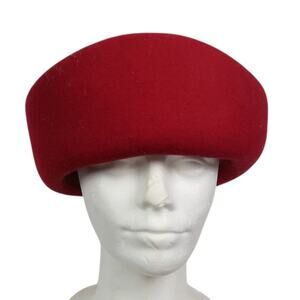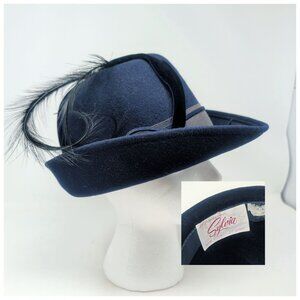 This beautiful vintage hat is in excellent condition. It is made from rabbit fur and has a decorative button near the front. The hat is somewhat oval and is meant to sit on top of the head. It’s approximately 20” around.