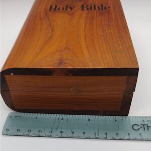 This Vintage bible in wood case with handkerchief from the Eisenhower Museum in Abilene Kansas was presented to Wanda in 1953.