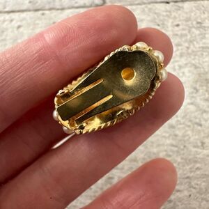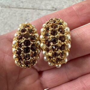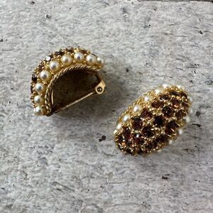 Vintage 50s Old Hollywood Clip On Rhinestone Faux Pearl Earrings