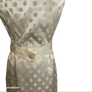 Polkadot cream dress from Parfait Originals fastens across the waist and with a buttoned belt around the back. Timeless elegance, beautifully made and In fabulous condition. Size says 11, measurements suggests XS/S