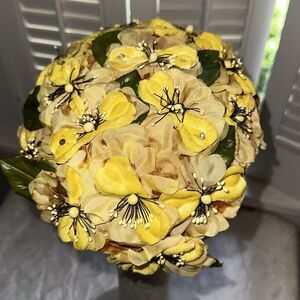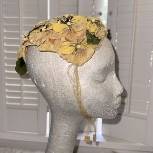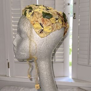 Vintage 50s/60s Yellow Floral Hat with netting that ties under chin