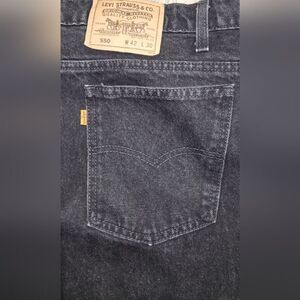 Vintage 550 Levi's Orange Tab Relaxed fit size 40x30. Tag says 42 but measures to be a 40. Made in the USA, 1993 Black denim with a slightly faded look. In great condition, no flaws. please check out my other items.