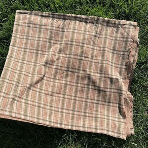 Vintage 60s 70s Plaid Poly Knit Fabric Green Orange Brown Retro Sewing 62"x106"