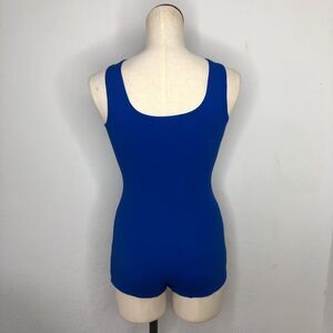 Vintage 60s 70s Retro One Piece Stretch Nylon Swimsuit Pin Up Mod Playsuit Blue