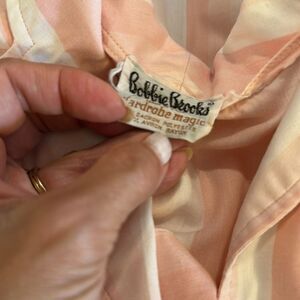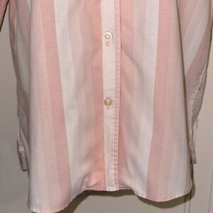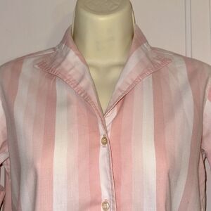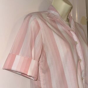 Vintage 60s Bobbie Brooks Pink & White Vertical Striped Short Sleeve Polyester/Rayon Button Down Shirt