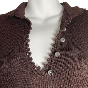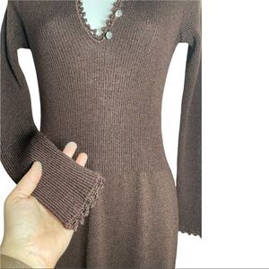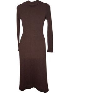 Vintage 60s Goldworm Knit Ribbed Crochet MIDI Chocolate Brown Sweater Dress XS