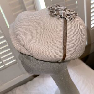 Vintage 60s Karen Hats Beige Women's Cap with Taupe Velvet Ribbon Detailing