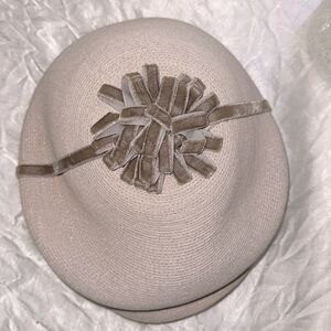 Vintage 60s Karen Hats Beige Women's Cap with Taupe Velvet Ribbon Detailing Excellent Vintage condition Size 22 For a woman with a very small head Super cute!