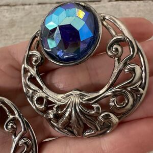 Vintage 60s Large Filigree Faceted Gem Clip On Earrings