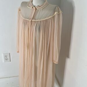Vintage 60s Pink Polka Dot Chiffon Robe