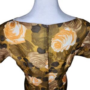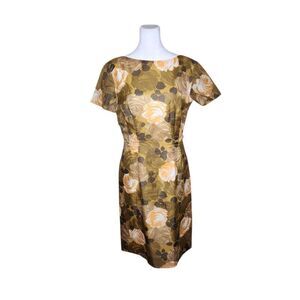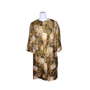Vintage 60s Tava Shift Dress Matching Duster Floral Womens M Brown