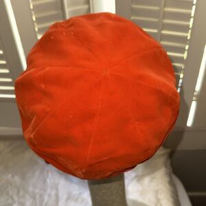 Vintage 60s Tomato Red Velvet Beret with Gold Buckle Detailing