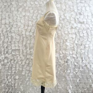 This vintage slip dress is a must-have for any fashion-forward woman. The beautiful yellow color and intricate lace detailing make it perfect for a casual occasion. The slip is made of high-quality nylon material and comes in the size type of regular.