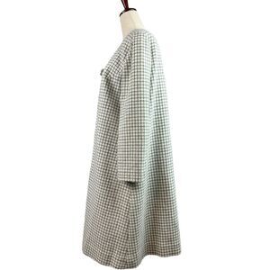 Vintage 60s Wool Plaid Checkered Dress Overcoat Button Front Full Sleeves Lined