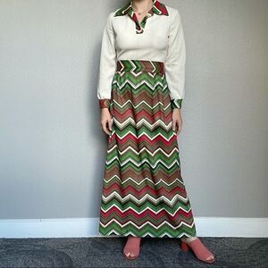 Vintage 60s Red Green Geometric Psychedelic Maxi Dress Size 6