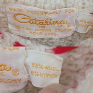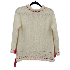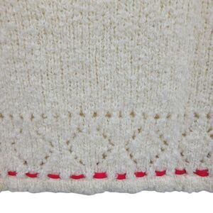 Vintage 60's Sweater Tunic Wool Knobby Knit Ivory Holiday GoGo Pink Ribbon S