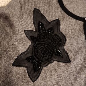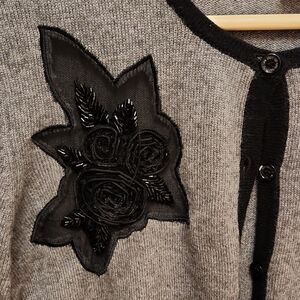 Vintage 70's, 80's Love Moschino cardigan with velvet pooffy rose and beads