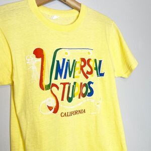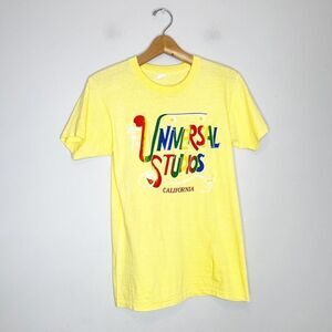 Vintage 70s 80s Size Medium Universal Studios California T-Shirt Yellow Rainbow